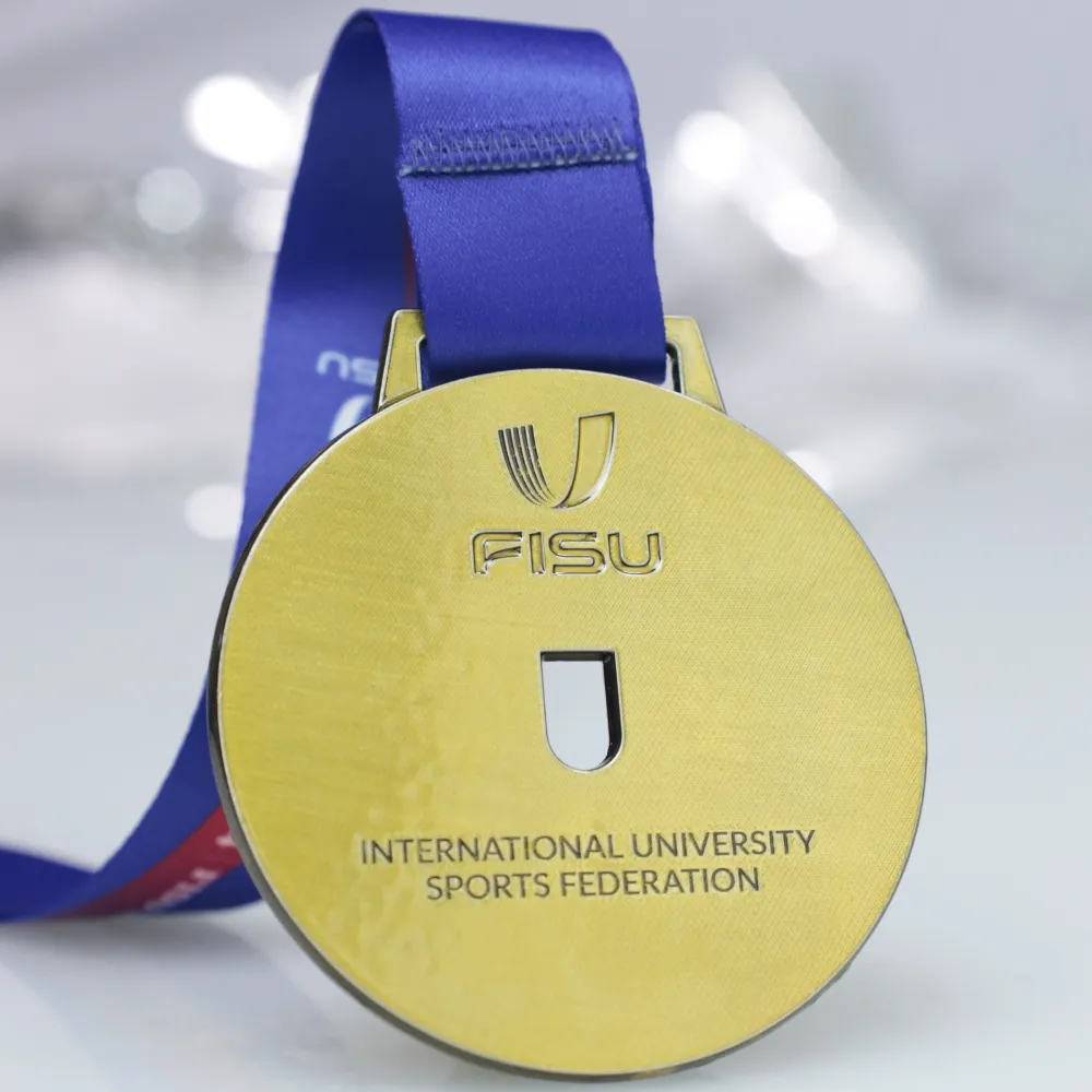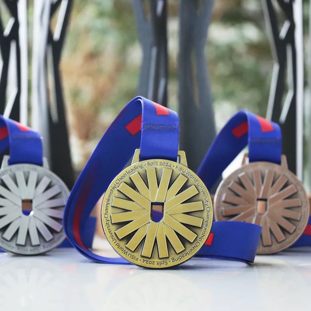 Diese Medaille wurde für die FISU World University Championship Cheerleading 2024 in Split entworfen. Das auffällige Design mit strahlenförmig angeordneten Balken symbolisiert Dynamik und Teamgeist. Der mittige Ausschnitt in Form eines „U“ steht für die universitäre Gemeinschaft und verleiht der Medaille eine moderne Note.