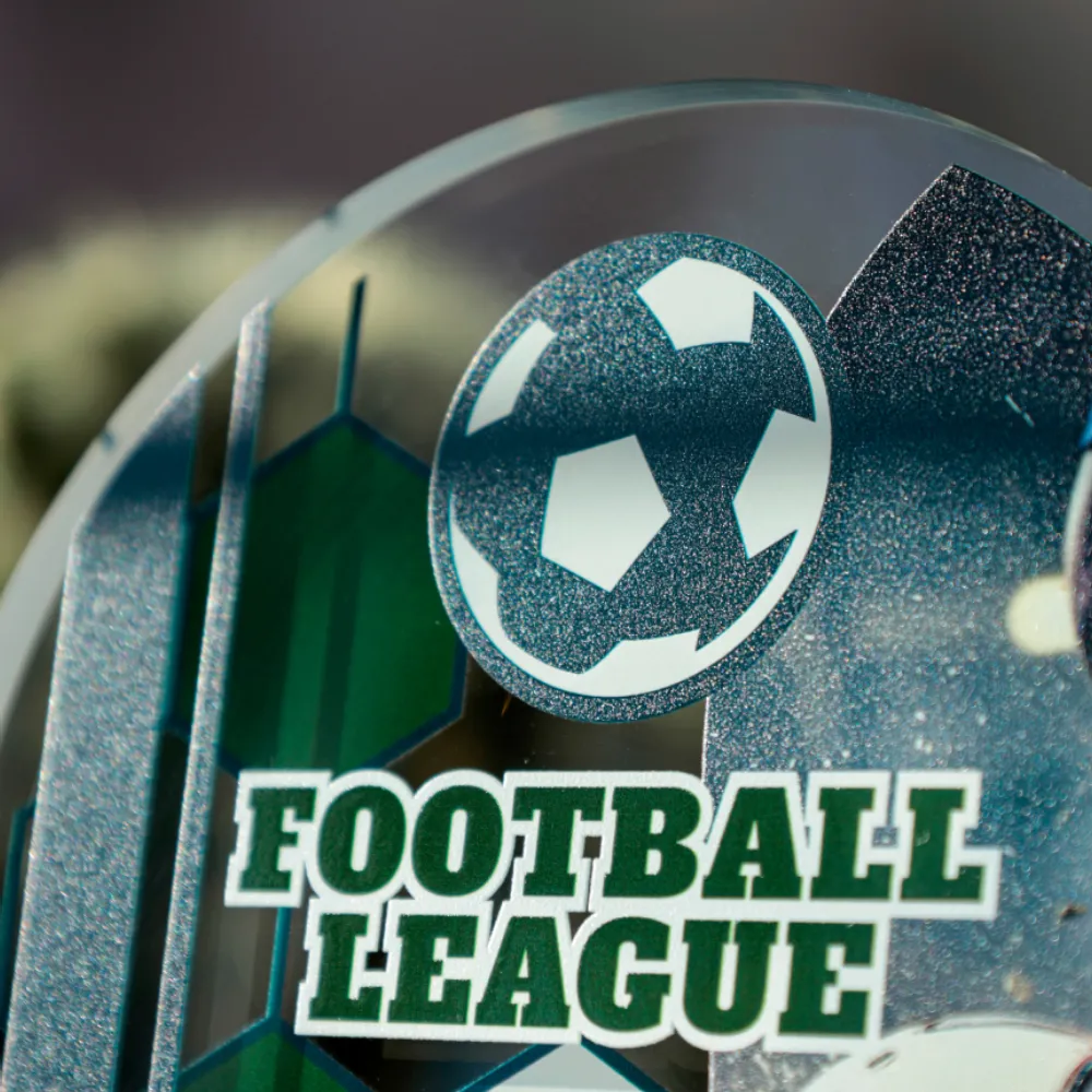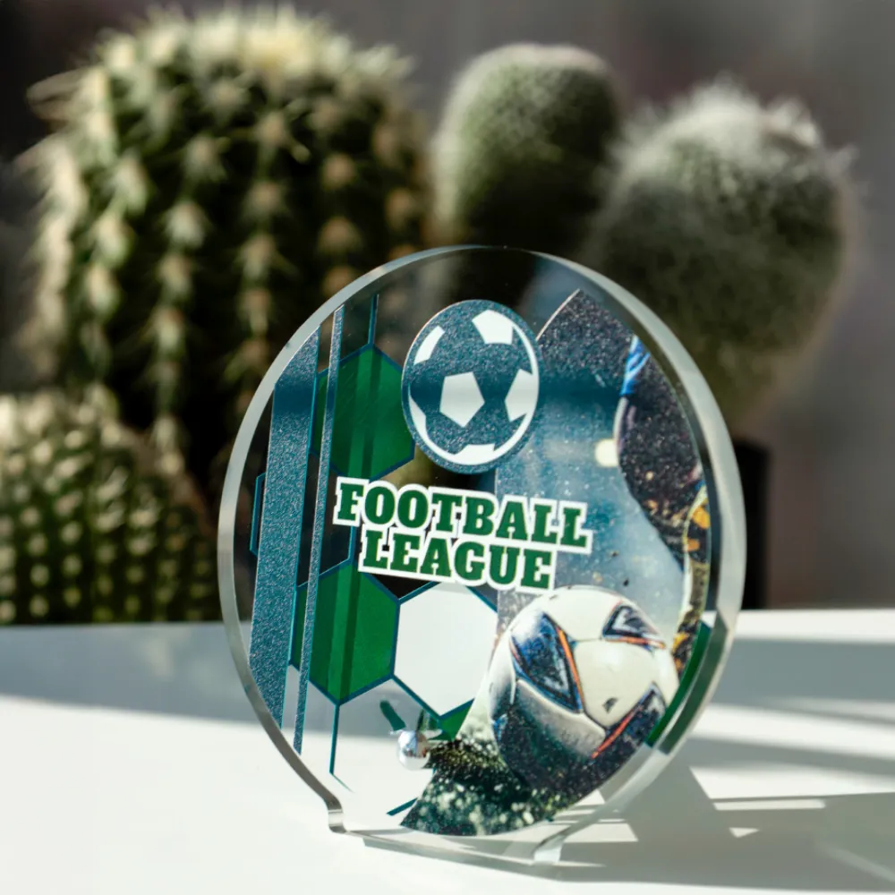 Die Statuette Football League ist eine besondere Trophäe, die speziell für Fußballfans entworfen wurde. Ihre runde Form aus langlebigem und ästhetischem Acryl besticht durch Leichtigkeit, Transparenz und ein modernes Design. Der präzise, sportlich gestaltete Aufdruck und der auffällige Schriftzug in der Mitte verleihen der Trophäe einen dynamischen Charakter und spiegeln den Geist des Fußballwettbewerbs perfekt wider. Die energiegeladene Grafik mit Ballmotiv macht diese Auszeichnung zur idealen Wahl für Turniere und Liga-Wettkämpfe – sowohl für Mannschaften als auch für einzelne Spieler.