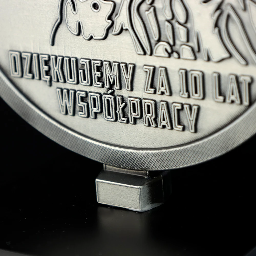 Sind Sie auf der Suche nach einer Auszeichnung, die Sie einem Unternehmen oder einer Person als Dank für die Zusammenarbeit an einem gemeinsamen Projekt überreichen können? Oder möchten Sie das Engagement externer Partner würdigen, die maßgeblich zum Erfolg Ihrer Marke beigetragen haben? Dann sind Sie bei uns genau richtig! Wir bieten Ihnen eine Vielzahl an Möglichkeiten, die wir nicht nur individuell personalisieren, sondern auch exakt auf Ihre Wünsche abstimmen. Denn wir fertigen Trophäen auf Bestellung – exakt nach den Vorgaben unserer Kundinnen und Kunden. Ein Beispiel dafür ist diese individuelle Auszeichnung, die wir als Ehrung für 10 Jahre Zusammenarbeit mit dem Sportverein Adler Berlin entworfen haben.