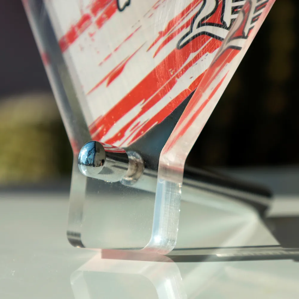 Acrylstaue in interessanter Form, die für das Hyper Fighter Turnier vorbereitet wurde. Acryl kombiniert mit einem Sockel sorgt für eine stabile Auszeichnung bei Turnieren und Kampfsportwettbewerben.