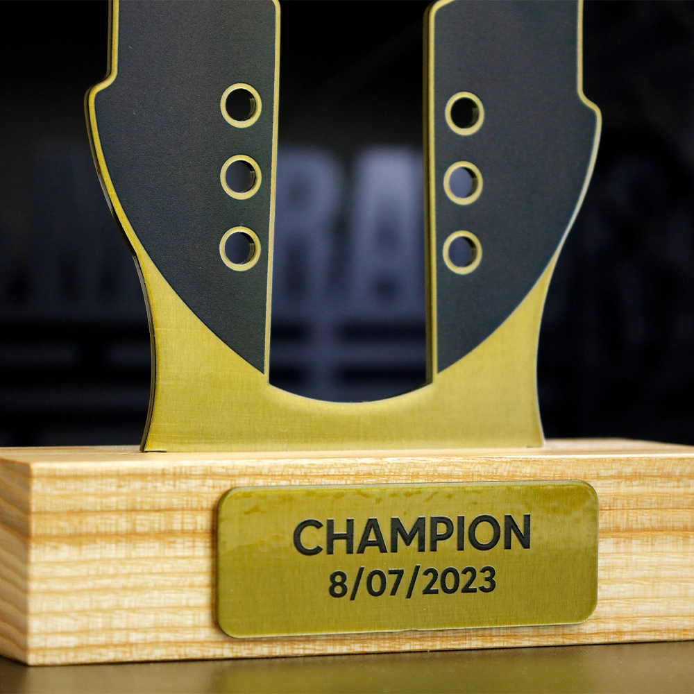 Kampfsport ist eine Sportart, die nicht einfach ist. Sie verlangt Kraft, Können und einen entschlossenen Geist. All das wollten wir in den Trophäen vereinen, die wir für das Londoner Taekwon-Do-Turnier vorbereitet haben. Deshalb haben wir ein einzigartiges Design eines beeindruckenden Sets entwickelt, das aus einer Trophäe und Medaillen für die Erstplatzierten besteht. Beide Preise sind aufeinander abgestimmt und ergänzen sich perfekt. Die Preise haben eine originelle Form, die an einen Helm erinnert. Im Inneren haben wir Aussparungen gearbeitet, die ihre Attraktivität erhöhen. Außerdem haben wir das gesamte Set mit einem kräftigen Farbdruck versehen, den wir so verstärkt haben, dass ein 3D-Effekt entsteht. Die Auszeichnung ist aus dickem Metall gefertigt, das auf einem stabilen Holzsockel mit einer soliden Plakette ruht.