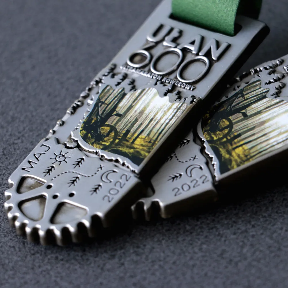 Eine Auszeichnung für die Teilnehmer einer extremen Radsport-Herausforderung. Das Design kombiniert eine Metallkonstruktion, die von einem Fahrradritzel inspiriert ist, mit Details, die an Waldstrecken erinnern. Die Medaille spiegelt perfekt den Geist des Ultramarathons wider.
