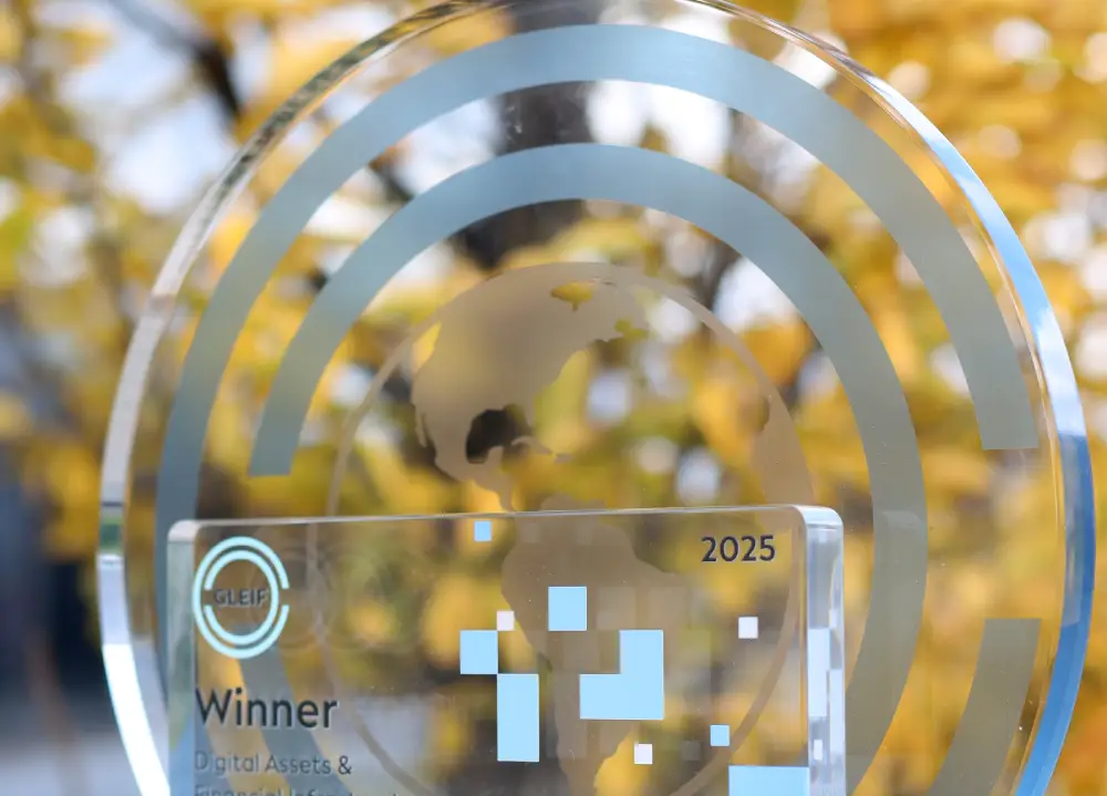 Statuette „GLEIF WINNER Digital Assets & Financial Infrastructures“