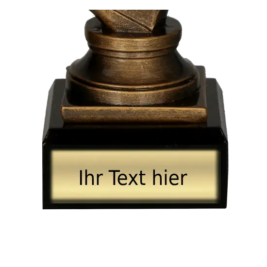 Um der Trophäe eine persönliche Note zu verleihen, bieten wir die Möglichkeit, eine Plakette mit einer personalisierten Gravur hinzuzufügen. Dies kann der Name der ausgezeichneten Person, der Name der Veranstaltung, das Datum oder ein inspirierendes Motto sein, das die Bedeutung dieses besonderen Moments unterstreicht.
