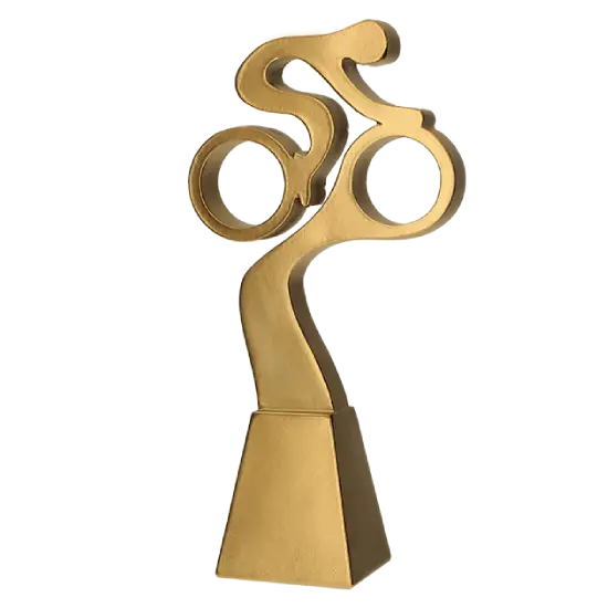 Der Radfahrer während der Fahrt ist eine Metapher für Ausdauer, Dynamik und Bewegung: Das Fahrrad steht für Freiheit, Geschwindigkeit und den unaufhörlichen Drang nach vorne. Wenn wir diese Trophäe überreichen, belohnen wir nicht nur die Erfolge, sondern inspirieren auch zu weiterem Wachstum und dem Streben nach eigenen Träumen.
