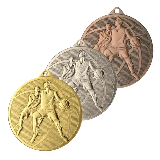 Die Medaille ist in der Form eines Basketballs mit den charakteristischen Linien gestaltet. Zwei Spieler in Aktion, die um den Ball kämpfen, symbolisieren Wettkampfgeist, Energie und Leidenschaft für das Spiel. Präzise geprägte Konturen und feine Details erzeugen einen Effekt, der sofort ins Auge fällt und diese Medaille von anderen Basketball-Auszeichnungen abhebt. Das hochwertige Metall sorgt für Langlebigkeit und einen eleganten Look – sowohl in der goldenen, silbernen als auch in der bronzenen Ausführung.