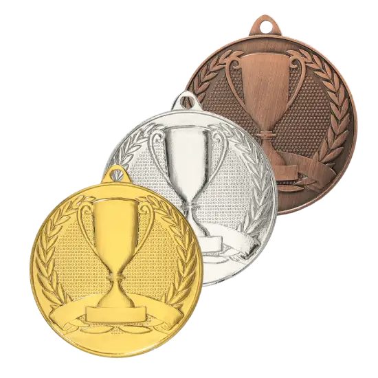 Medaillen stellen eine allgemeingültige Ausdrucksform der Wertschätzung für Leistung und Talent dar. Unser Modell der Medaille entspricht genau den Erfordernissen unterschiedlicher Sportveranstaltungen und Wettbewerbe. Mit diesem Stahlkreis können Sie Ihre eigene Widmung auf der Rückseite und einen thematischen Aufkleber auf der Vorderseite der Medaille anbringen, der die Art einer bestimmten Disziplin oder Veranstaltung am besten widerspiegelt. Er wurde mit Blick auf die Personalisierung entworfen. Das Ganze kann durch die Auswahl eines passenden Bandes oder eines praktischen Medaillenetuis abgerundet werden. Dieses bietet nicht nur ästhetischen Wert, sondern auch Schutz für die Medaille. Geben Sie den Teilnehmern Ihres Events ein dauerhaftes Zeichen für ihre Leistungen, das sie mit Stolz präsentieren können.