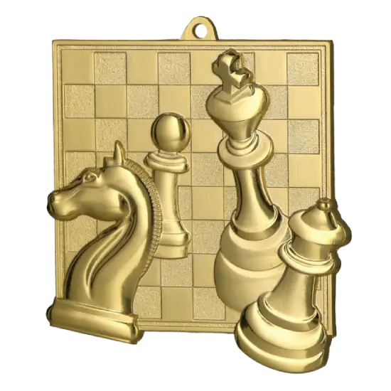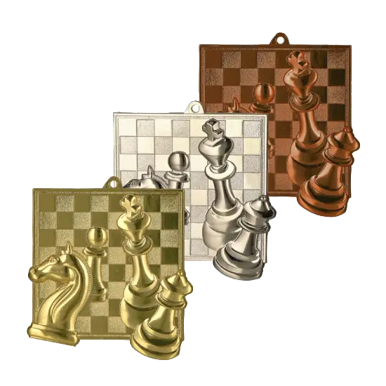 Die Medaille hat die quadratische Form eines Schachbretts. Im Zentrum befindet sich ein präzise gestaltetes Spielbrett sowie Schachfiguren – König, Dame, Springer und Bauer – die dezent über den Rand hinausragen. Gefertigt aus robustem Metall, ist sie kratzfest und farbbeständig, sodass ihr Glanz über viele Jahre erhalten bleibt.