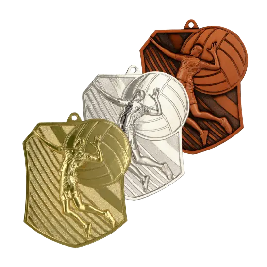 Die Medaille Volleyballspieler ist in drei klassischen Varianten erhältlich: Gold – für Sieger, Silber – für den zweiten Platz und Bronze – für den dritten Platz.