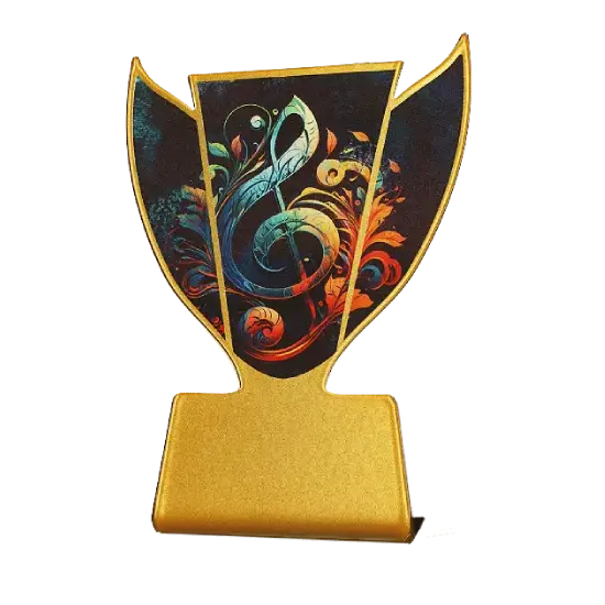Metall-Trophäe Musik wurde aus solidem Metall mit einer Dicke von 2 mm gefertigt, was ihre Haltbarkeit und elegantes Aussehen gewährleistet. Ihre einzigartige Form wurde mit Laserschneidetechnologie erzeugt. Der hochwertige UV-Druck zeichnet sich durch lebendige Farben und hohe Abriebfestigkeit aus, sodass die Trophäe ihr Aussehen über lange Zeit behält.