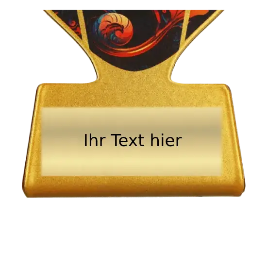 Die Trophäe kann mit einer gravierten Plakette auf ihrer Basis personalisiert werden. Du kannst den Namen der Veranstaltung, den Namen des Preisträgers, das Datum oder eine Widmung hinzufügen, wodurch die Auszeichnung einen außergewöhnlichen, individuellen Charakter erhält.