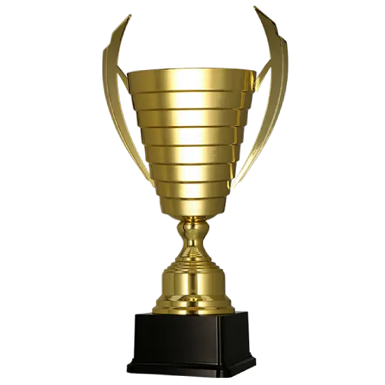 Der elegante Fuß aus Kunststoff sorgt für Stabilität. Die goldene Oberfläche des Pokals bildet einen starken Kontrast zur schwarzen Basis und schafft ein eindrucksvolles Gesamtbild. Pokal 2081 ist in drei Höhen erhältlich – 45 cm, 50,5 cm und 55,5 cm – und ermöglicht so die Anpassung an die Größe der Veranstaltung, von kleinen Wettbewerben bis hin zu großen Galas.