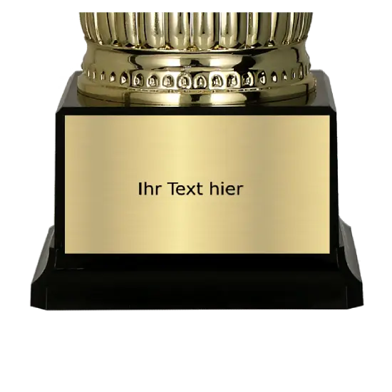 Auf dem schwarzen, stabilen Sockel befindet sich Platz für ein individuell graviertes Schild. Du kannst dort beliebigen Text platzieren – z. B. den Namen des Teams, das Datum des Ereignisses, den Namen des Spielers oder ein Turniermotto. Ein personalisierter Fußballpokal verleiht jeder Ehrung eine persönliche Note und schafft eine bleibende Erinnerung an den Erfolg.