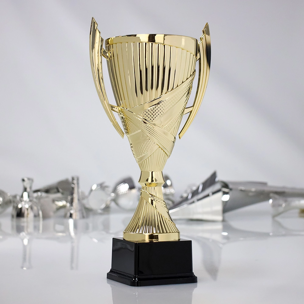 Dieser Pokal verbindet edle Verarbeitung mit klassischem Design. Der goldene Kelch mit dekorativen Griffen zieht die Blicke auf sich, während der proportionierte Stiel und der stabile Sockel für Eleganz und Standfestigkeit sorgen. Er ist leicht und dennoch robust, und sein attraktives Design macht ihn zum Blickfang auf dem Podium, in der Vitrine oder am Ehrenplatz im Zuhause des Gewinners.
