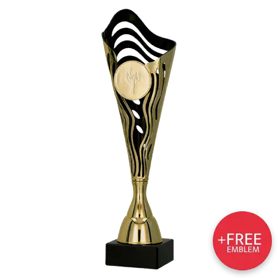 Pokal 8353 ist eine Trophäe, die schon auf den ersten Blick alle Blicke auf sich zieht. Die Kombination von glänzendem Gold mit tiefem Schwarz im Inneren des Kelchs verleiht ihm eine edle Ausstrahlung. Die perfekte Wahl für alle, die die Besten ihres Fachs auf eine außergewöhnliche und eindrucksvolle Weise ehren möchten.