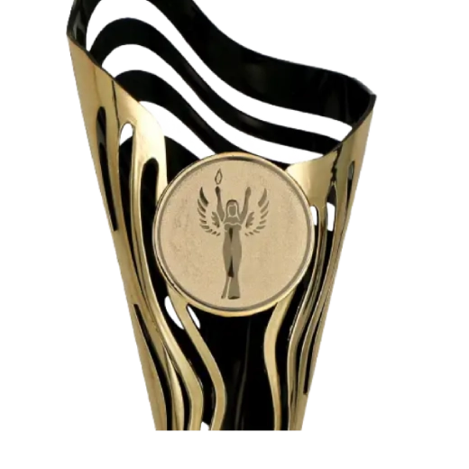 Das Modell 8353 ist aus Kunststoff gefertigt, was ihm Leichtigkeit und eine ansprechende Optik verleiht. Der schlanke Kelch in moderner Form ist mit dekorativen Aussparungen versehen, die ihm Eleganz und Originalität verleihen. Das tiefe Schwarz im Inneren harmoniert perfekt mit dem schwarzen Marmorsockel und sorgt dafür, dass der Pokal bei jeder Zeremonie besonders stilvoll wirkt.