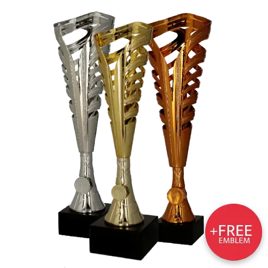 Pokal 8361 ist eine elegante und moderne Auszeichnung, die Erfolge in jeder Disziplin würdigt. Erhältlich in drei Farbvarianten – Gold, Silber und Bronze – ermöglicht er ein komplettes Set für die Erstplatzierten auf Platz 1, 2 und 3 und unterstreicht so die Bedeutung des Erfolges.