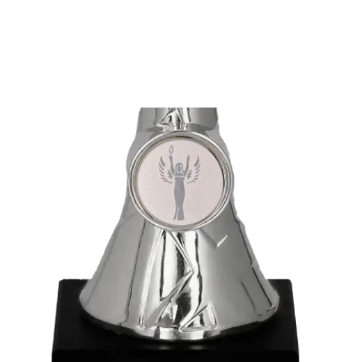Der Korpus des Pokals besteht aus Kunststoff mit silberner Oberfläche. Am Schaft befindet sich ein Platz für ein Emblem, wodurch sich das Trophy-Design individuell anpassen lässt. Das Ganze steht auf einem stabilen, hellen Marmorsockel, der nicht nur für Standfestigkeit sorgt, sondern auch den idealen Hintergrund für eine Gravurplatte bietet.