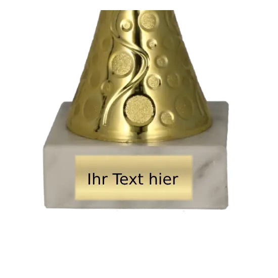 Ein großer Vorteil des Pokals ist die Personalisierung. Auf dem eleganten Marmorsockel kann eine Gravurplatte angebracht werden – z. B. mit Name des Gewinners, Veranstaltungsname oder einem kurzen Motivationsspruch. So wird jedes Exemplar einzigartig und erhält eine individuelle Note.