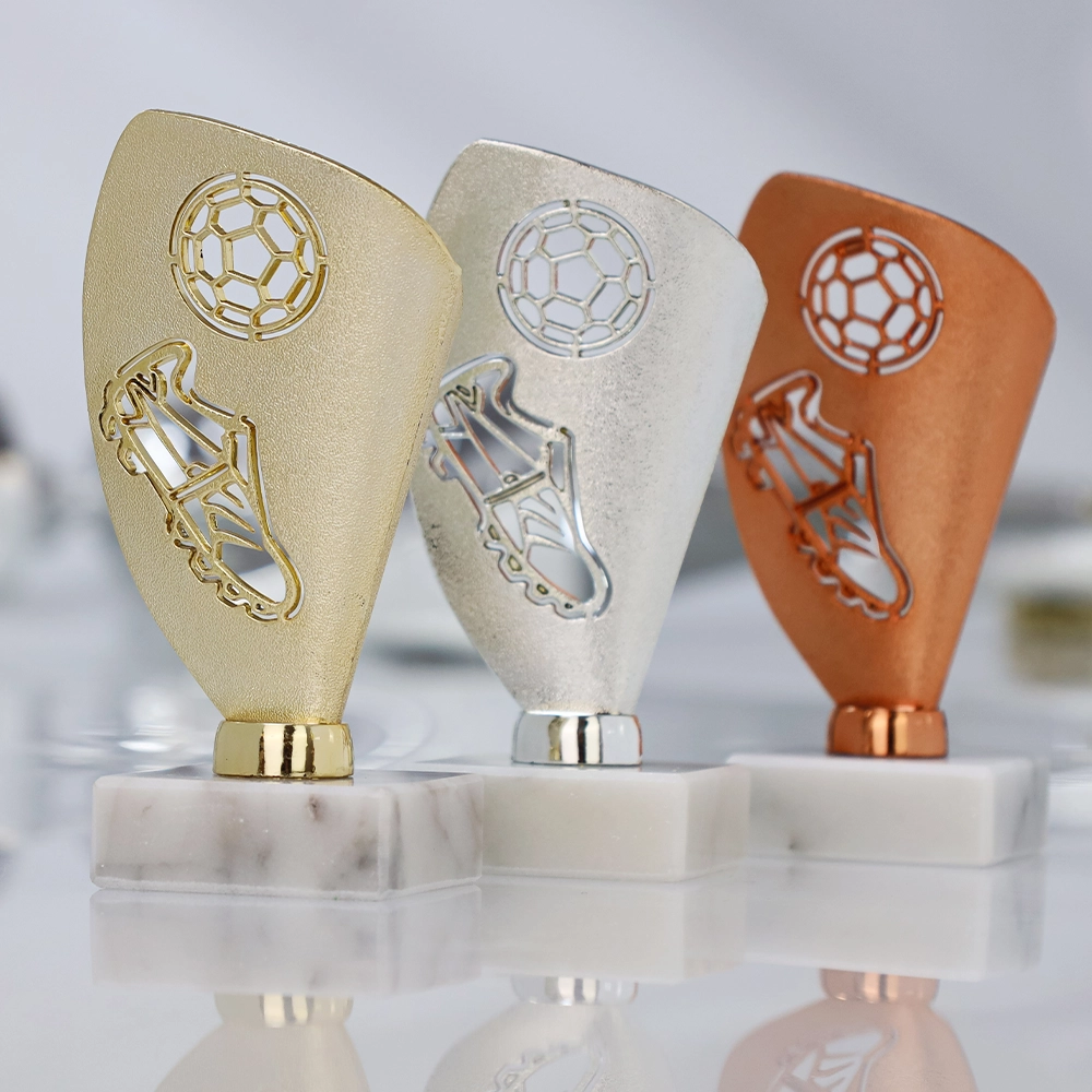 Dieser Pokal vereint ansprechendes Design, Langlebigkeit und Funktionalität. Die originelle Form mit Fußballmotiven vermittelt den Geist des Fußballs perfekt. Der Marmorsockel verleiht Eleganz und sorgt für einen besonders prestigeträchtigen Gesamteindruck.