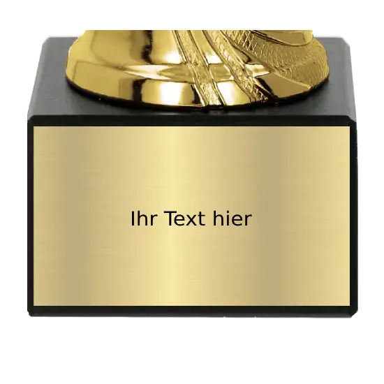 Ergänzend kann eine Metall-Plakette auf dem Sockel angebracht werden, auf der wir den gewünschten Text gravieren. Häufig enthält diese den Namen des Preisträgers, das Datum, den Namen der Veranstaltung und eine kurze Widmung. So wird jede Auszeichnung zu einem individuellen Erinnerungsstück, das über Jahre hinweg an den Erfolg erinnert.
