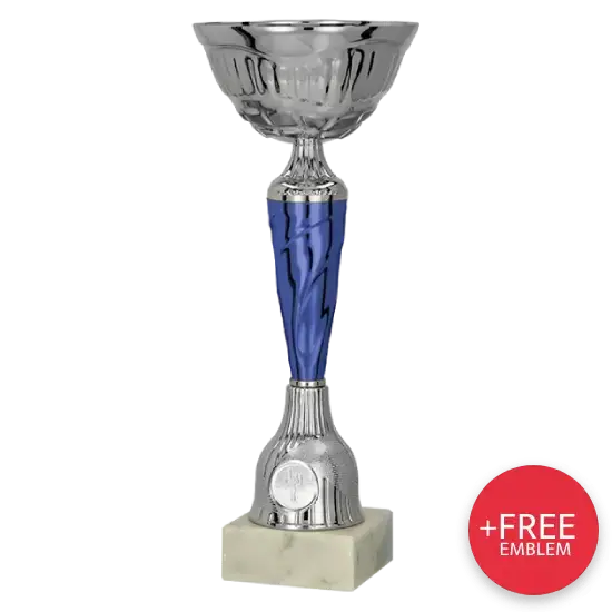 Dieses Modell kombiniert die klassische Form eines Pokals mit einem modernen, dezenten blauen Akzent, der sofort ins Auge fällt. Der silberne Kelch steht für Erfolg, während der Marmorsockel zeitlose Eleganz vermittelt. Solche klassiche Pokale überzeugen sowohl bei großen Galas als auch bei kleineren Veranstaltungen und hinterlassen stets einen bleibenden Eindruck.