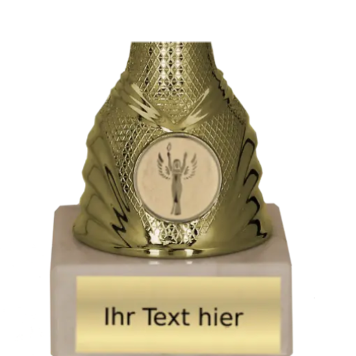 Modell 9287 lässt sich vollständig an den Charakter Ihrer Veranstaltung anpassen. Am Sockel befindet sich ein rundes Platz für ein Emblem, das jedes Symbol, Logo oder eigene Grafik darstellen kann. Zusätzlich wird auf dem Marmorsockel eine Gravurplatte angebracht – z. B. mit dem Namen des Wettbewerbs, der Kategorie des Preises oder einer persönlichen Widmung. So wird jeder Pokal zu einem einzigartigen Andenken für den Gewinner.
