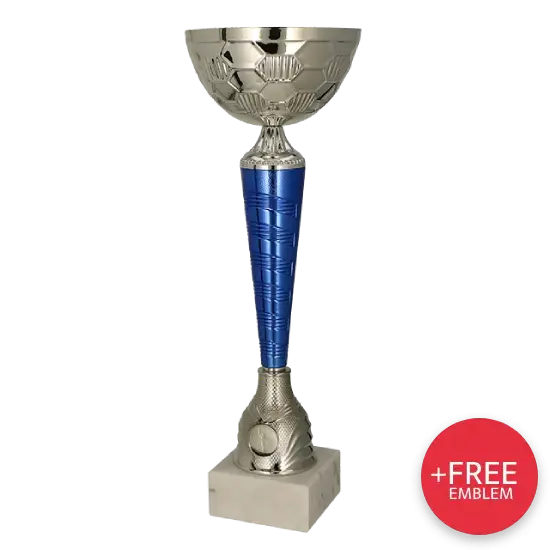 Das Modell 9288 vereint hochwertige Verarbeitung, elegante Gestaltung und vielseitige Personalisierungsmöglichkeiten. Der silberne Kelch mit geometrischem Muster, der blaue Fuß mit Relief und der Marmorsockel machen ihn zu einer Auszeichnung, die sich von klassischen Pokalen abhebt. Seine universelle Einsetzbarkeit passt zu verschiedensten Anlässen, während Gravur und Emblem für Individualität sorgen. Mit diesem Pokal entscheiden Sie sich für eine prestigeträchtige und langlebige Auszeichnung, die zum bleibenden Symbol des Erfolges wird.