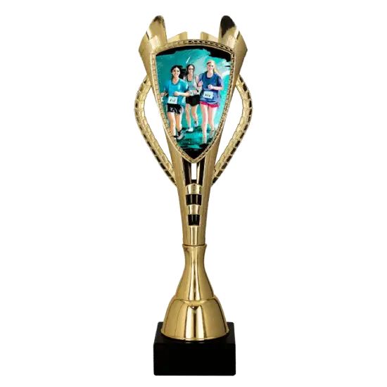 Dieser leichte Pokal für Sportwettkämpfe mit Frauenbeteiligung vereint beeindruckende Optik, attraktiven Preis und flexible Gestaltungsmöglichkeiten. Er ist robust, einfach zu transportieren und zu lagern – und überzeugt dabei mit professioneller Anmutung.